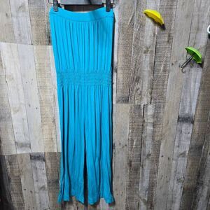 Trina Turk Blue Strapless Wide Leg Jumpsuit