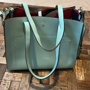 Trina Turk Blue Turquoise Tote Handles Shoulder Strap Fun Interior