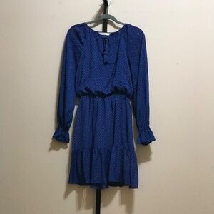 Trina Turk Blue Viti Puff Sleeve V-Neck Mini Dress