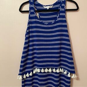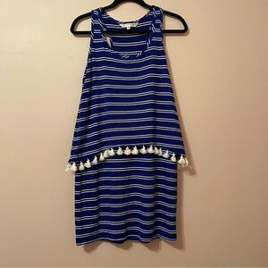 Trina Turk • Blue and White Striped Tasseled Double Layered Dress • Size M • EUC