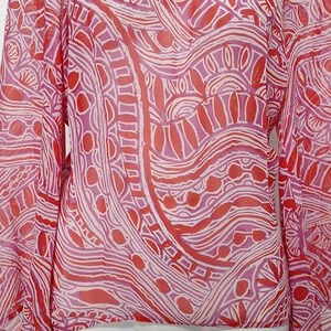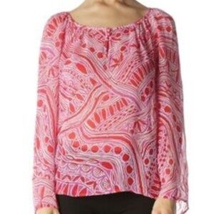 Trina Turk Bohemian Magenta & Red Print 92% Silk Sheer Peasant Blouse Size L