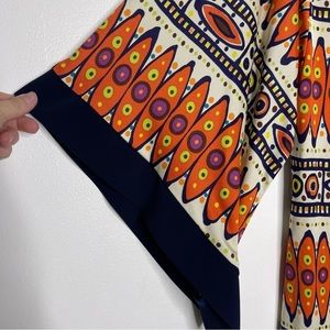 Trina Turk Boho Tribal Wide Sleeve 100% Silk Dress Size 8
