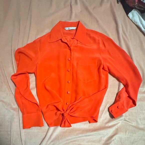 Striking orange blouse with a classic collar. Ideal for a standout style.