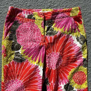 Trina Turk Botanical Jacquard Lutton Pant Women 4 Floral Cropped Bright Colorful.