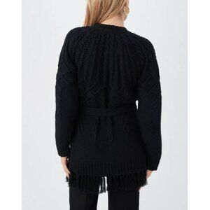 Trina Turk 'Bourdele' Fringe-Trim Merino Wool Cardigan Sweater, Black