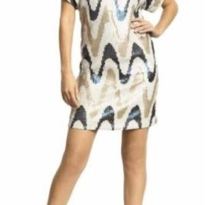 louche silhouette, dropped shoulders and short, dolman sleeves.