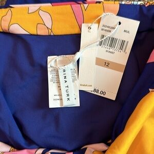 NWT Trina Turk Breeze High Waist Swim Bottom in Multi. Size 12. Hygienic Liner attached. From a smoke free home.