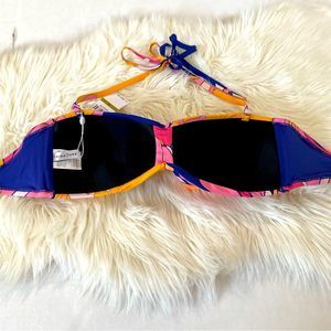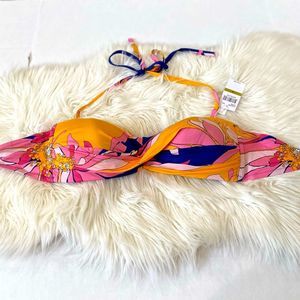 Trina Turk Breeze Multi Beach Twist-Front Bandeau Swim Bikini Top Size 14