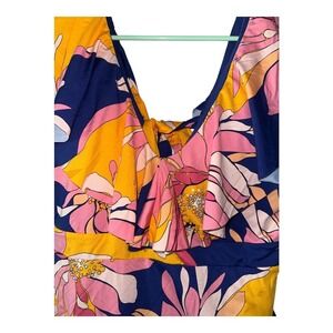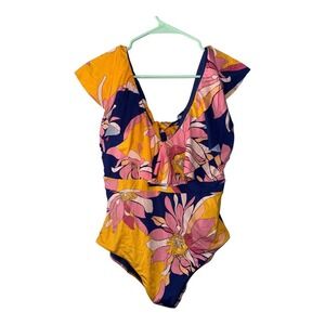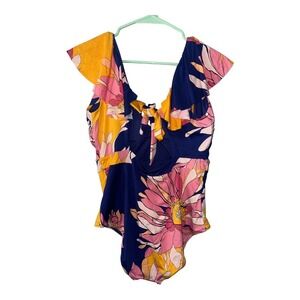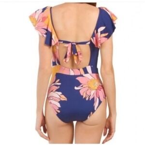 Trina Turk Breeze Ruffle One Piece Blue Multicolor Swimsuit, Size 14