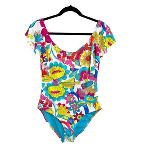 Trina Turk Bright Colorful Floral Off the Shoulder Ruffle One Piece Swim Suit 12