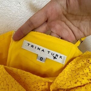 Trina Turk Bright Lace Crochet Mesh Yellow Twist Bow Bust Tank Cami Mini Dress spring summer floral iconic brunch wedding vacation beach occasion lunch dinner guest bridal prom graduation