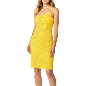 Trina Turk Bright Lace Crochet Mesh Yellow Twist Bow Bust Tank Cami Midi Dress