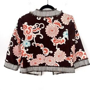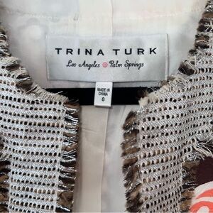 Trina Turk Los Angeles Palm Springs Brown Metallic Fringe Open Cardigan Jacket