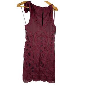 Trina Turk Burgundy Red Silk Embroidered Sleeveless Halter Mini Dress Size XS