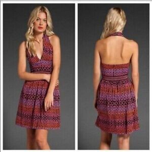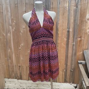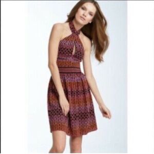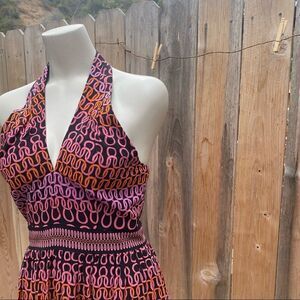 Trina Turk Campania Silk Halter Dress Sz 4 V neck or Keyhole