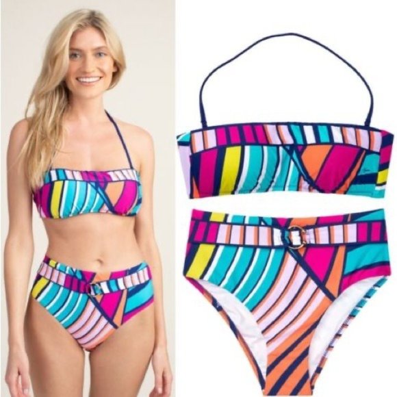 🌸💐Trina Turk Catch a Wave High Waist Belted Bikini🌸💐 Sz 12