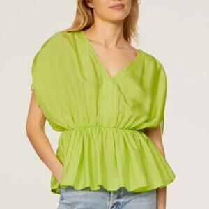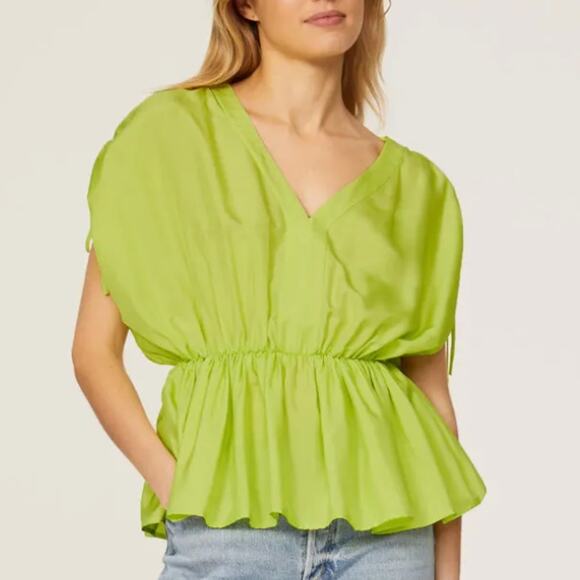 Trina Turk Chartreuse Peplum Top MEDIUM Gathered Grecian Vacation Designer $228