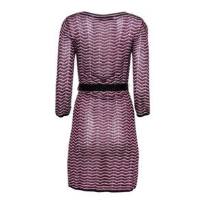 Bring a pop of color to your wardrobe with the Trina Turk Striped Chevron Viscose Sweater Dress. This Size M, V-neck dress features a stylish chevron knit pattern in black and pink. Comes with an under slip. Brand new with tags.