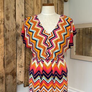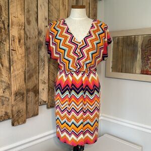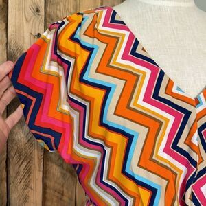 Trina Turk Chevron Redondo Zig Zag Stripe Short Sleeve Colorful Vneck Mini Dress