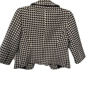 Stylish black and white houndstooth jacket with a classic design. Perfect for any occasion.