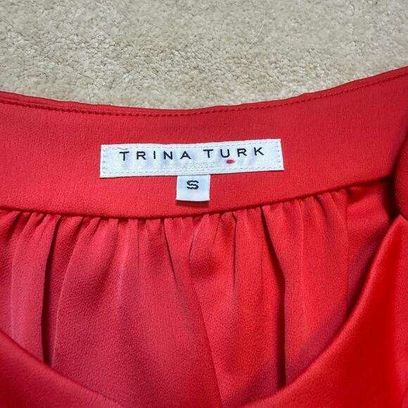 Trina Turk Chihiro Top Size Small Flowy Red Crepe Bold Colorful
