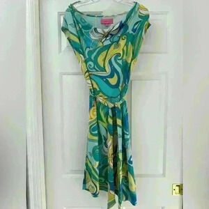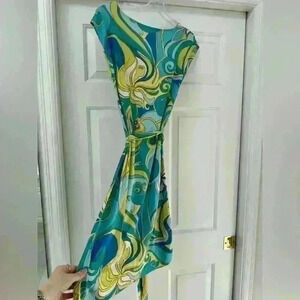 Trina Turk Collection Small Blue Green Floral Cowl Neck Sleeveless Dress EUC