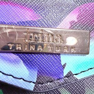 Trina Turk vibrant crossbody bag features a stunning floral design in shades of pink, purple, and green. Perfect for adding a pop of color to any outfit. Gold hardware, Some scratching on name label (see photo) Large inside zipper pocket, snap pocket & slide pocket, six credit card pockets