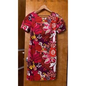 Trina Turk Colorful Hawaiian Mod Floral Print Sheath Dress Puff Sleeve Resort 4