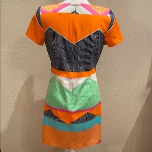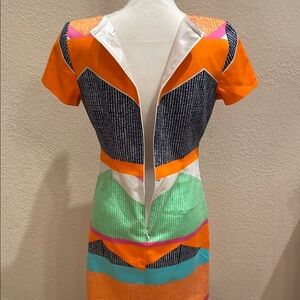 Trina Turk Colorful Sheath Mini Dress with Flutter Sleeves