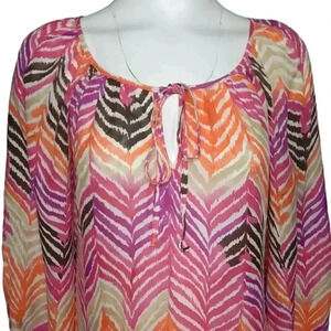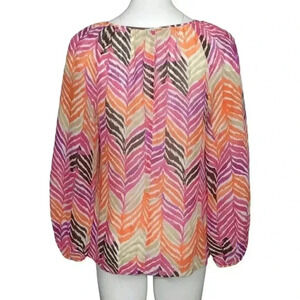 Trina Turk Colorful Silk Peasant Top Pink Orange Chevron Long Sleeve Size Small