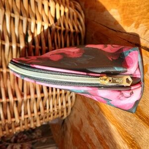 Trina Turk Cosmetic Makeup Bag Floral Black Pink Pouch Zipper