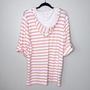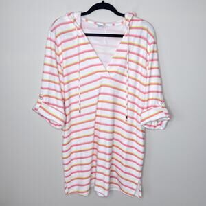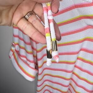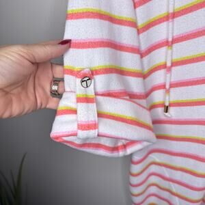 Trina Turk Costa De Prata Hooded Terry Tunic Coverup Large Roll Tab Beach Resort
