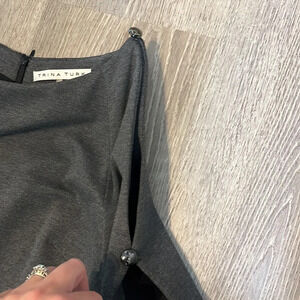 Trina Turk Crawford Button Sleeve Cold Shoulder Gray Career Dress