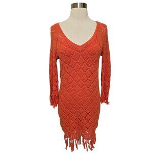 Trina Turk Dress Crochet Knit Size Small Orange Fringe
