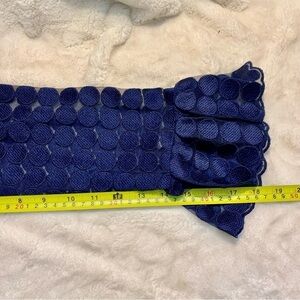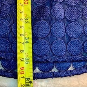 Trina Turk Dress Medium Navy Blue Mini Long Slvs Lace Dots Ruffle Neckline Cuffs