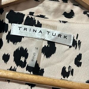 Trina Turk Dress Size 14 Confidential Printed Wrap Black Cream Animal Print