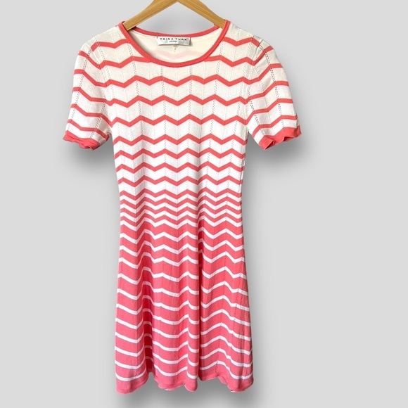 Size small Trina Turk Dress Sweater Knit Chevron Pink Cream Fully Lined.