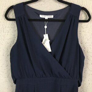 Trina Turk Dress Women 8 Navy Blue Crossover Cape Back V Neck Versatile NEW