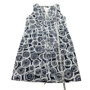Trina Turk Dress Womens 4 Blue White Kindle Mimosa Geometric Print Full Zip READ