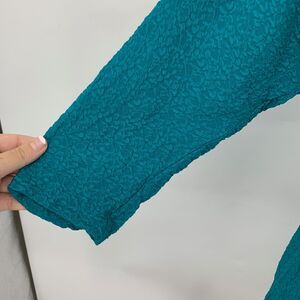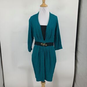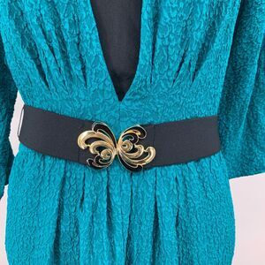 Trina Turk Dress Womens 6 Jade Peacock Silk Cloque Crinkled Textured Retro Belt