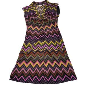 Size 8 Preowned-Good Condition Purple green chevron print, v neck, mini