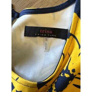 Trina Turk Dress Womens Small Yellow Blue Floral Vacation Designer Wedding Guest