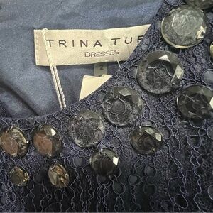 Trina Turk Dresses TD13R047 Navy Jeweled Neckline Lace Overlay, New with Tags