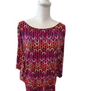 New Trina Turk Echo Chain Print Swim Cover Up Tunic Dress Black Pink, size XL.