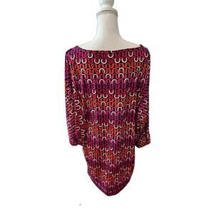 Trina Turk Echo Chain Print Swim Cover Up Tunic Dress Black Pink XL