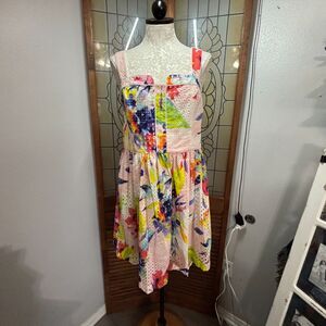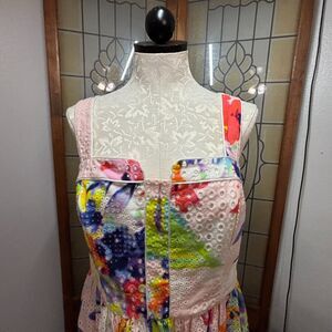 Trina Turk Elin Cotton Watercolor Eyelet Fit And Flare Dress Size 12 NWT pet friendly non smoking home