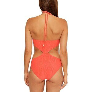 Trina Turk 'Empire' High-Neck One-Piece Swimsuit, Papaya Metallic