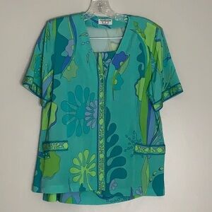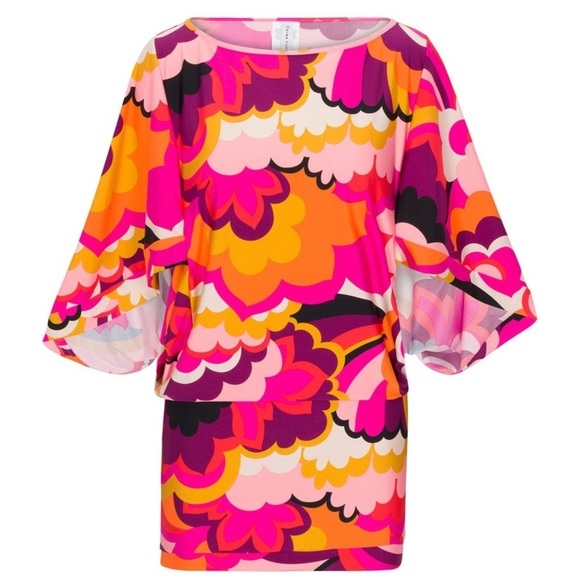 Trina Turk FAN FAIRE SWIM TUNIC DRESS psychedelic floral retro mini women’s XL