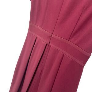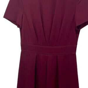 Trina Turk Fit & Flare Women's Dress Wine Pleated Short Cap Sleeve Zip Back 6/8
