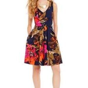 Trina Turk Fit and Flare Dark Floral Dress size 8 Autumn Stretchy Career Wedding